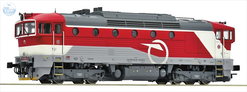 ROCO 7300082A Szlovák Államvasutak 754 083-as dízelmozdonyai.- A jelenlegi kivitelben- Apró részletgazdag kidolgozású modell számos külön rögzített, bedugható alkatrésszelAz úgynevezett 'búvárszemüveget' vagy 'szemüveges kígyót' a prágai CKD-nél fejlesztették ki és építették. A T 478.4, az előd T 478.3 típus továbbfejlesztése, erősebb motort és elektromos vonatfűtő rendszert kapott. 1988-ban a 86 mozdony az új 754-es osztályjelölést kapta. A 754 083-as mozdony 1980 májusában került átadásra a CSD-nek T 478.4083 azonosítószámmal.Amikor a járműparkot 1993. január 1-jén felosztották, ez volt az egyik a ZSR-hez átrendelt 26 mozdony közül.