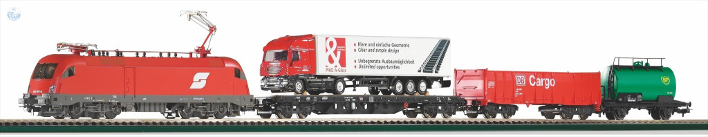 Kezdökészlet ÖBB w.3 Tehervagonok, PIKO A-Track w. ágyazatos sinekkel