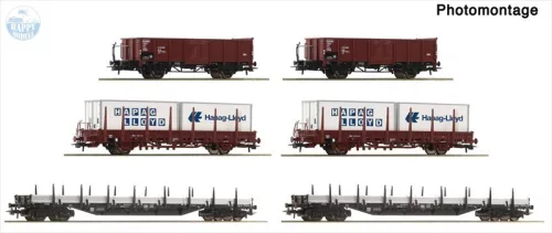 ROCO 6600334 : Rendező pályaudvar/Nyitott teherkocsik, 6 darabos