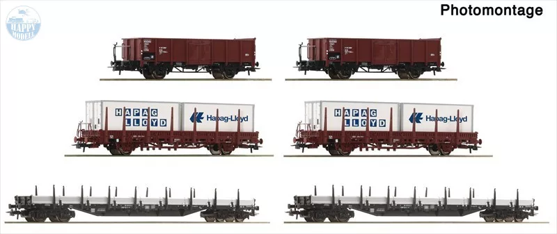 6 darabos kiállítás: A Német Szövetségi Vasút tolatópályaudvarának/nyitott teherkocsijai. Két E 040 típusú nyitott teherkocsiból, két Kbgs típusú 2-tengelyes és két Res típusú 4-tengelyes teherkocsiból áll. A kocsik egyenként is kaphatók szaküzletekben.