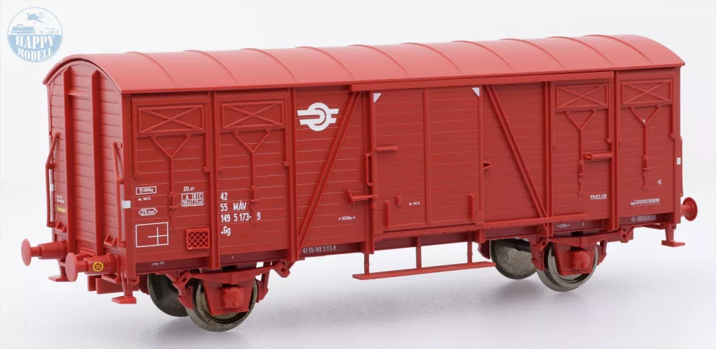 Magyar Államvasút Gg típusú fedett teherkocsija.