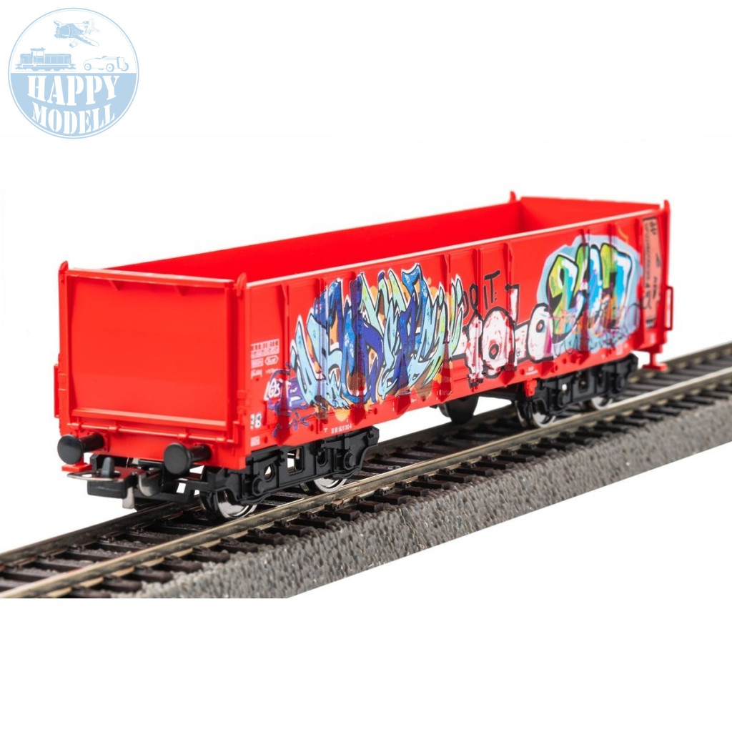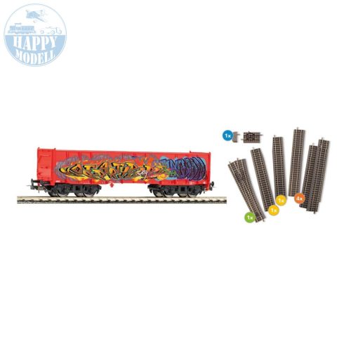 PIKO 55380 Nyitott graffitis kocsi + B ágyzatos sínkészlet