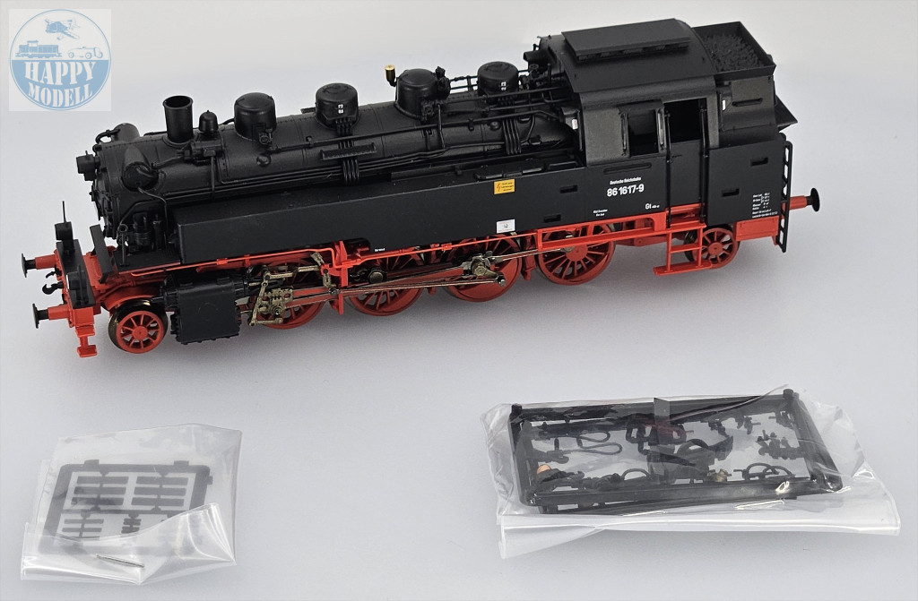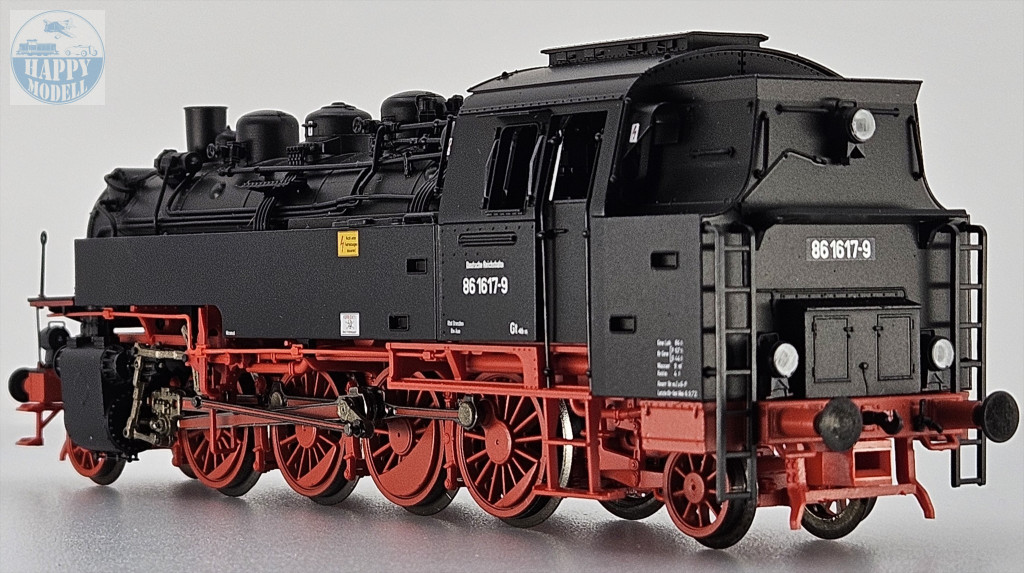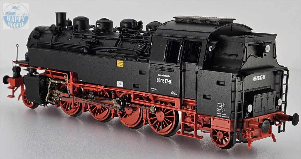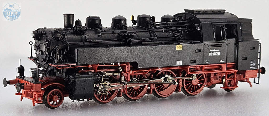 ROCO 7110027A Deutsche Reichsbahn 86 1617-es számú gőzmozdonya.Forma változat!- Első alkalommal ÜK vezetőfülkés változat- Finoman részletezett modell sok külön alkalmazott beépülő alkatrészrel- Hosszú kivágású víztartályok- Finom fém kerekek- Székhelye: Rbd Dresden, Bw Aue1928 és 1943 között szinte az összes német mozdonygyár összesen 775 ilyen osztályú mozdonyt gyártott a Deutsche Reichsbahn-Gesellschaft (DRG) számára. Ezeket az egyenként 1000 LE-s mozdonyokat 70-80 km/h maximális sebesség elérésére tervezték. Ez alkalmassá tette őket mind a fő-, mind a betápláló vezetékeken történő működésre, az elágazó vezetékeken történő elsődleges felhasználás mellett. Az 1950-es évek elején még 164 86-os osztályú mozdony állt szolgálatban a Német Demokratikus Köztársaságban (NDK). 1970-ben még 162 mozdonyhoz rendeltek számítógépes forgalmi számot, de végül 1973-tól kivonták a forgalomból.
