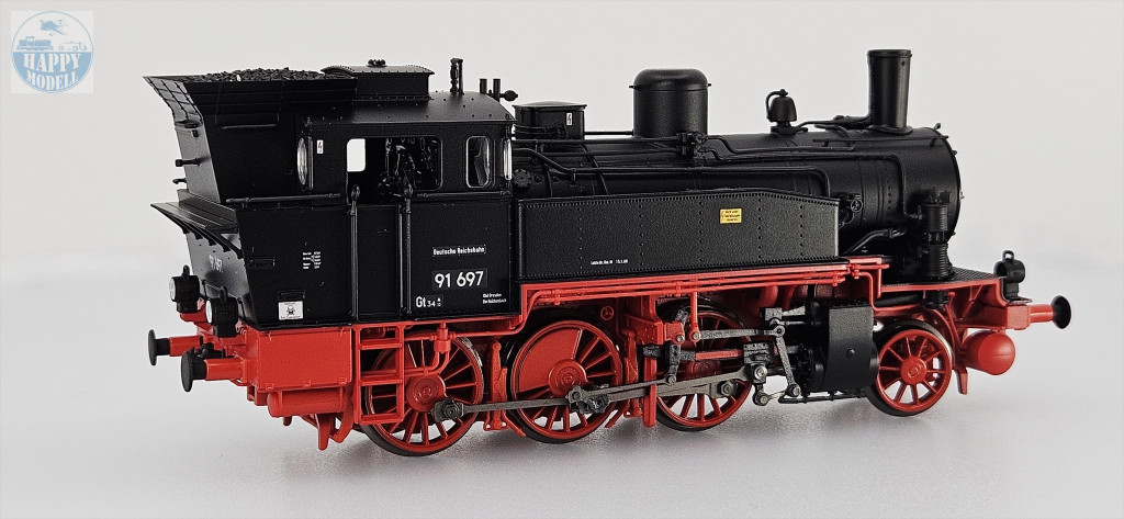 PIKO 50735Gőzmozdony BR91 DR2025-ös újdonság: 1945 után körülbelül 230 darab T 9.3-as mozdony maradt a szovjet megszállási övezet területén és 1949-ig a Deutsche Reichsbahnhoz szállították őket.A mozdonyokat kezdetben személy- és tehervonati szolgáltatásokra használták mellékvonalakon, de az 1960-as évek közepétől a leszerelés és a vontatás kezdeti változása miatt az aktív szolgálat egyre inkább megszűnt.Az osztály utolsó képviselőit a Deutsche Reichsbahn 1971-ben vonta ki a forgalomból.- Új design- Digitálisan kapcsolható vezetőfülke-világítás- Digitálisan kapcsolható futómű-világítás- Digitálisan kapcsolható tűztér-villogó- Megemelt széndoboz- Részletes belső berendezés- Számos szabadon álló alkatrész- Eredetihez hű lámpák és vezetékek- Finomöntvényű cink kerekek- Filigrán fékrudazat-PIKO TrainSoundŽ fedélzeti rendszer