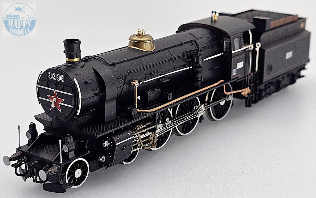 ROCO 7100025Magyar Államvasutak 302.608-as gőzmozdonya- Szabadon álló csövek és sok külön-külön alkalmazott dugaszolható alkatrész.- Ideális a gyors- és személyvonatok előtt történő üzemeltetéshez- alacsony profilu kerekek- Z21 virtuális vezetőfülke rendelhetőA 109-es osztályú mozdonyok jelentették a 2-C a mozdonyok csúcsát Ausztriában. Lehetővé tették, hogy a Bécs és Trieszt közötti menetidő 13,5 óráról 10,5 órára csökkenjen. 1913-ban a Budapesti Gépgyár tizenegy mozdonyt épített a birodalom magyarországi vonalain való használatra. A később Magyarországon 302-es sorozatúnak nevezett mozdony elsősorban a szívócsövek szögletes burkolatában és a jellegzetesen magyar lámpákban különbözik az eredeti 109-es szériától. A légszivattyú is más helyen van, mégpedig a kazán bal hátsó részén.A 109.107 pályaszámú gőzmozdony 1915-ben készült Budapesten, osztrák tervrajzok alapján. A DSA vasúttársaságot (Donau-Száva-Adria vasúttársaság) 1932-ben államosították. Járművei a MÁV-hoz kerültek. Ez a mozdony 1932-től MÁV 302.608 néven működött. A modell a mozdony utolsó éveinek külsejét mutatja be nekünk.